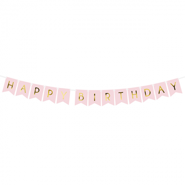 Der Rosa Banner mit goldenen Buchstaben ist ideal geeignet für die Partydekoration. Verschönern Sie den Raum und überraschen das Geburtstagskind!