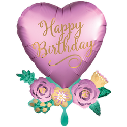 1 Ballon XXL - Birthday Satin Heart with Flowers