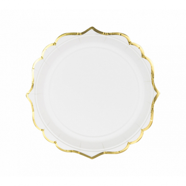 Produktinformationen "6 Pappteller Trend - Ø 18cm - Weiß & Gold"
