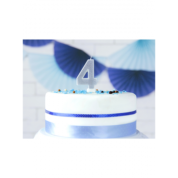 Produktinformationen "1 Kuchenkerze - Zahl 4 - Silber"