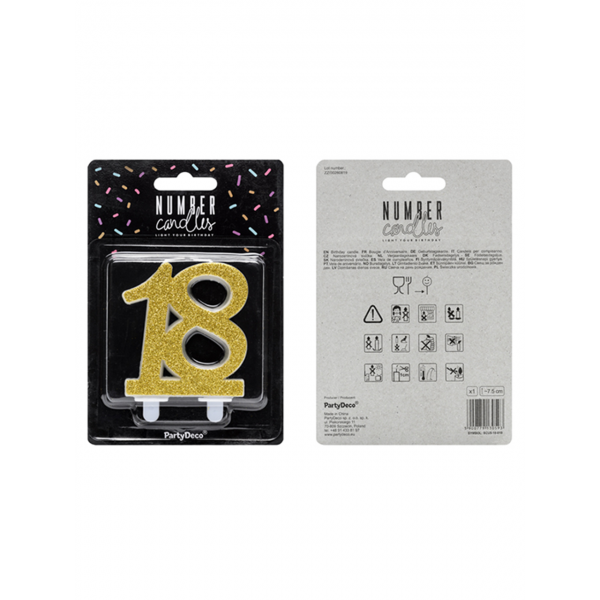 Produktinformationen "1 Kuchenkerze XL - Zahl 18 - Gold Glittery"