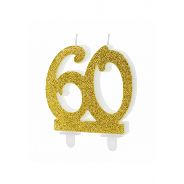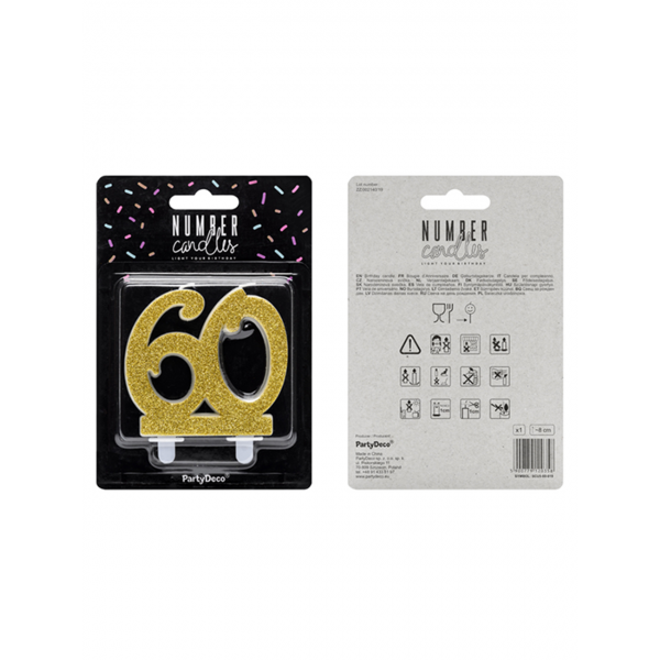 Produktinformationen "1 Kuchenkerze XL - Zahl 60 - Gold Glittery"